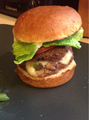 Never go out for a burger again when you can make these bad boys at home. I never understood just grilling up a plain burger and adding lots of different toppings so that there's flavor. I like mine to be stuffed. These burgers are so juicy, so flavorful, and so big! I would definitely grill them outside on the barbecue but if you can't a grilling pan will work. Don't overcook them, a little pink never hurt anyone. You can take the idea of stuffing them and add just about anything; blue cheese and hot sauce, sundried tomato purée and Parmesan, fresh mozzarella tomato and basil, any combination that makes your taste buds dance!